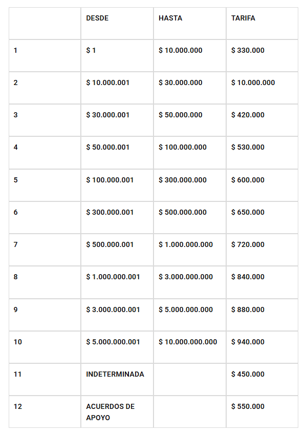 Las tarifas varían según la cuantía del conflicto.